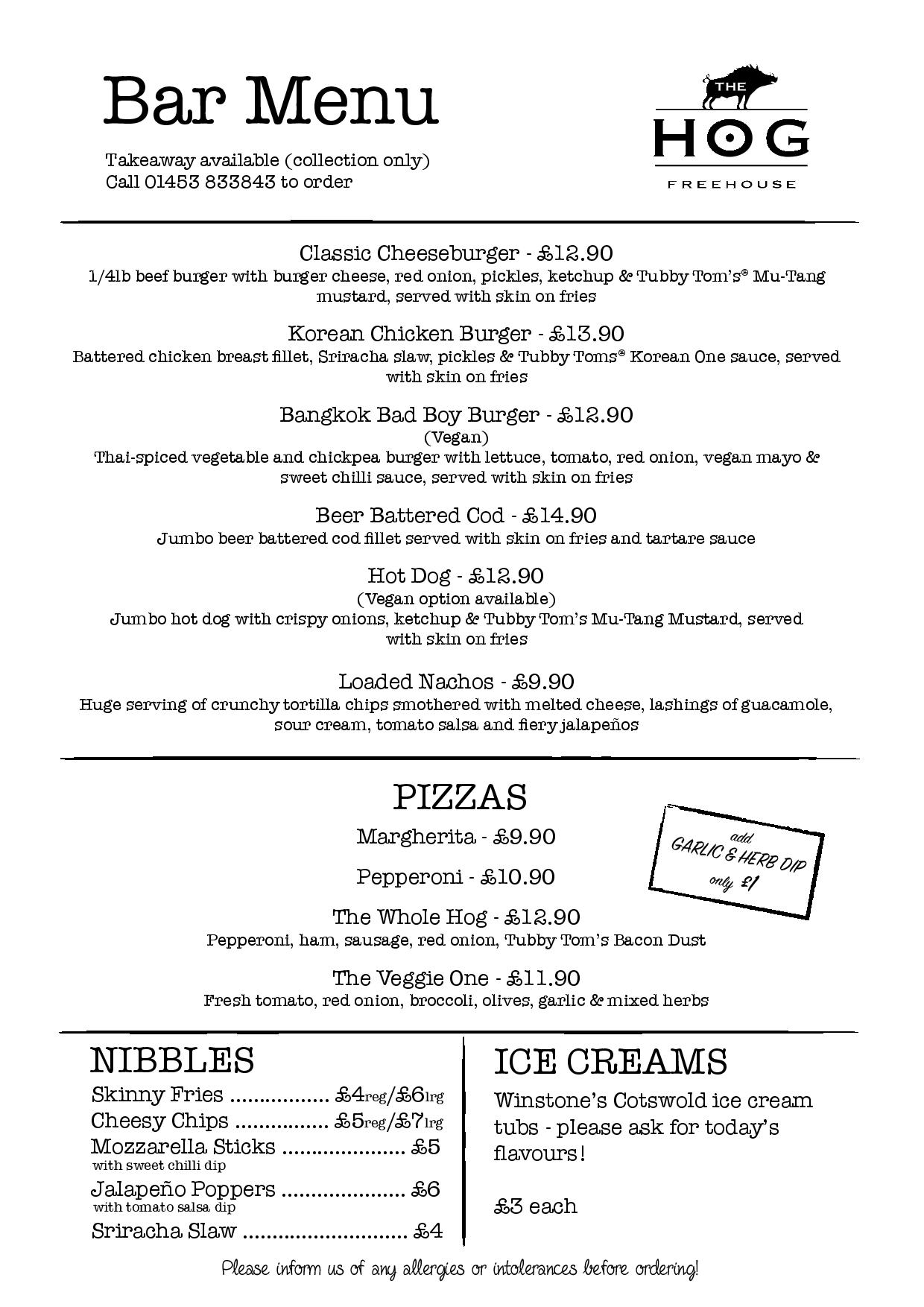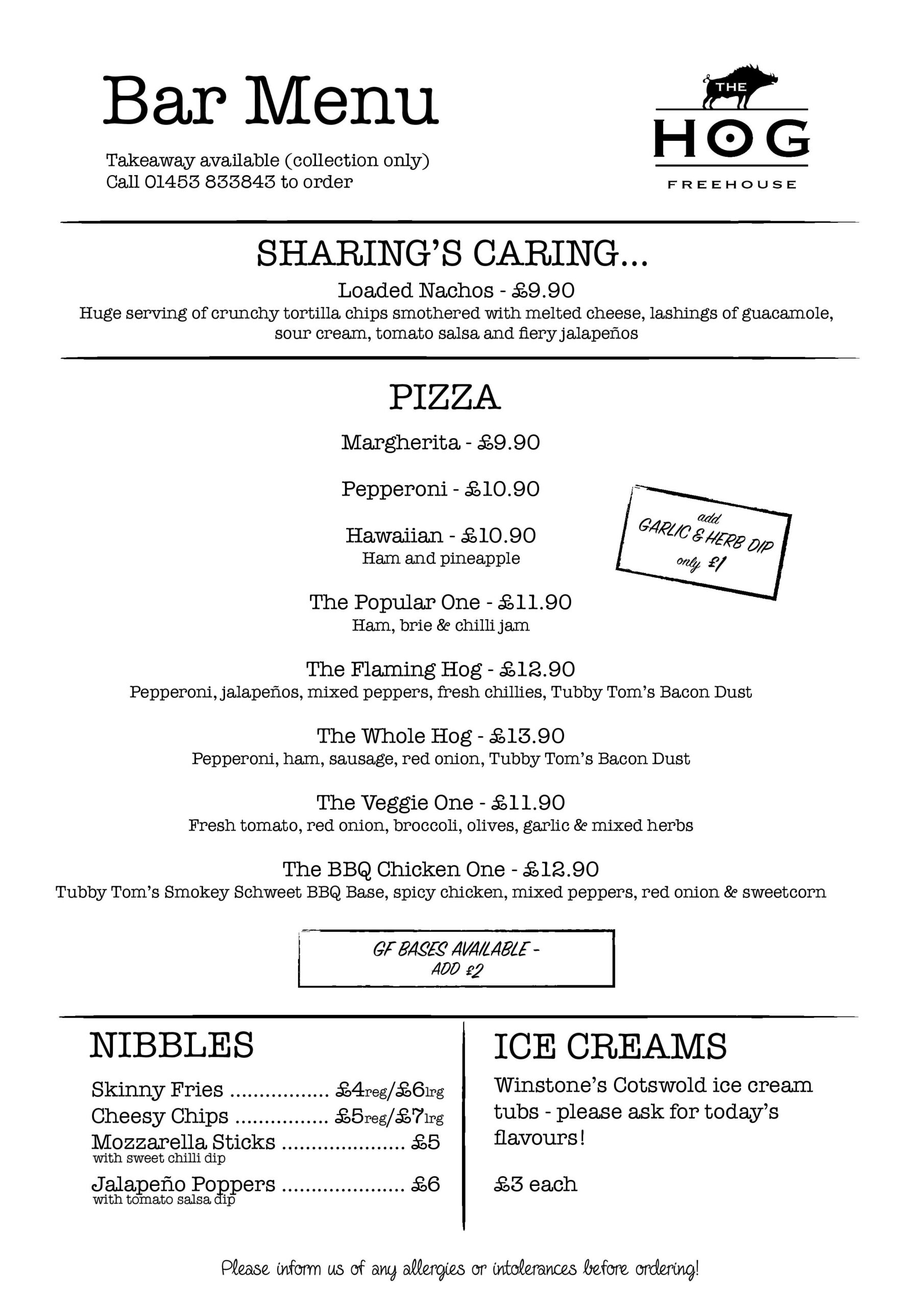 On weeks where we do not have a visiting pop-up kitchen, we run our Bar Menu – often with a few extra “specials”!